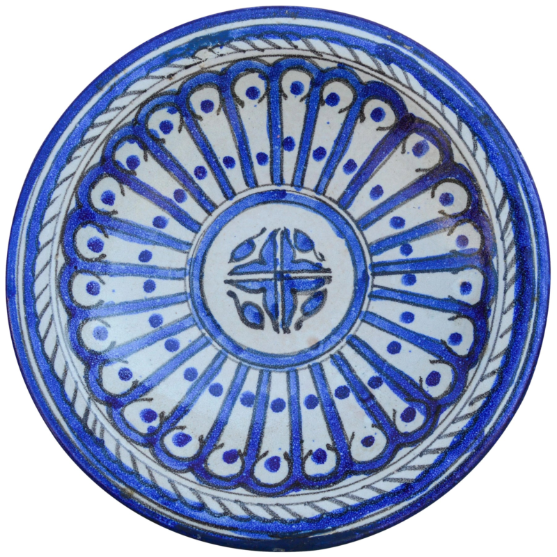 Handcrafted Moroccan Decorative Ceramic Plate Blue Radial Pattern