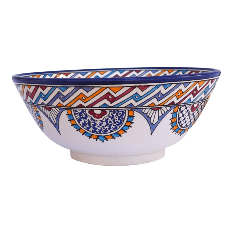 Handcrafted Moroccan Decorative Ceramic Bowl Geometric Zigzag Pattern