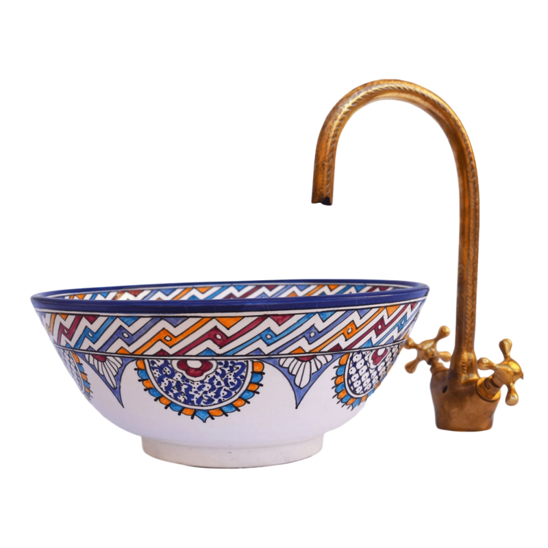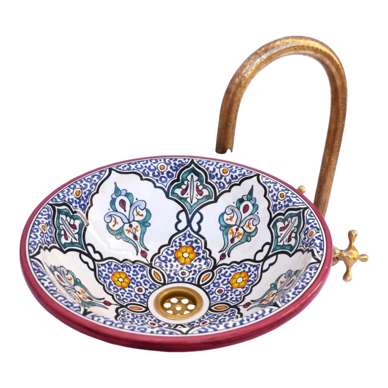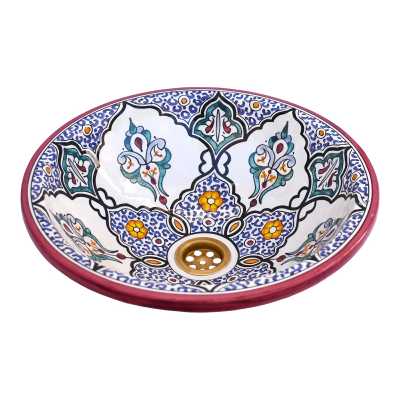 Handcrafted Moroccan Ceramic Sink Basin Decorative Floral Pattern